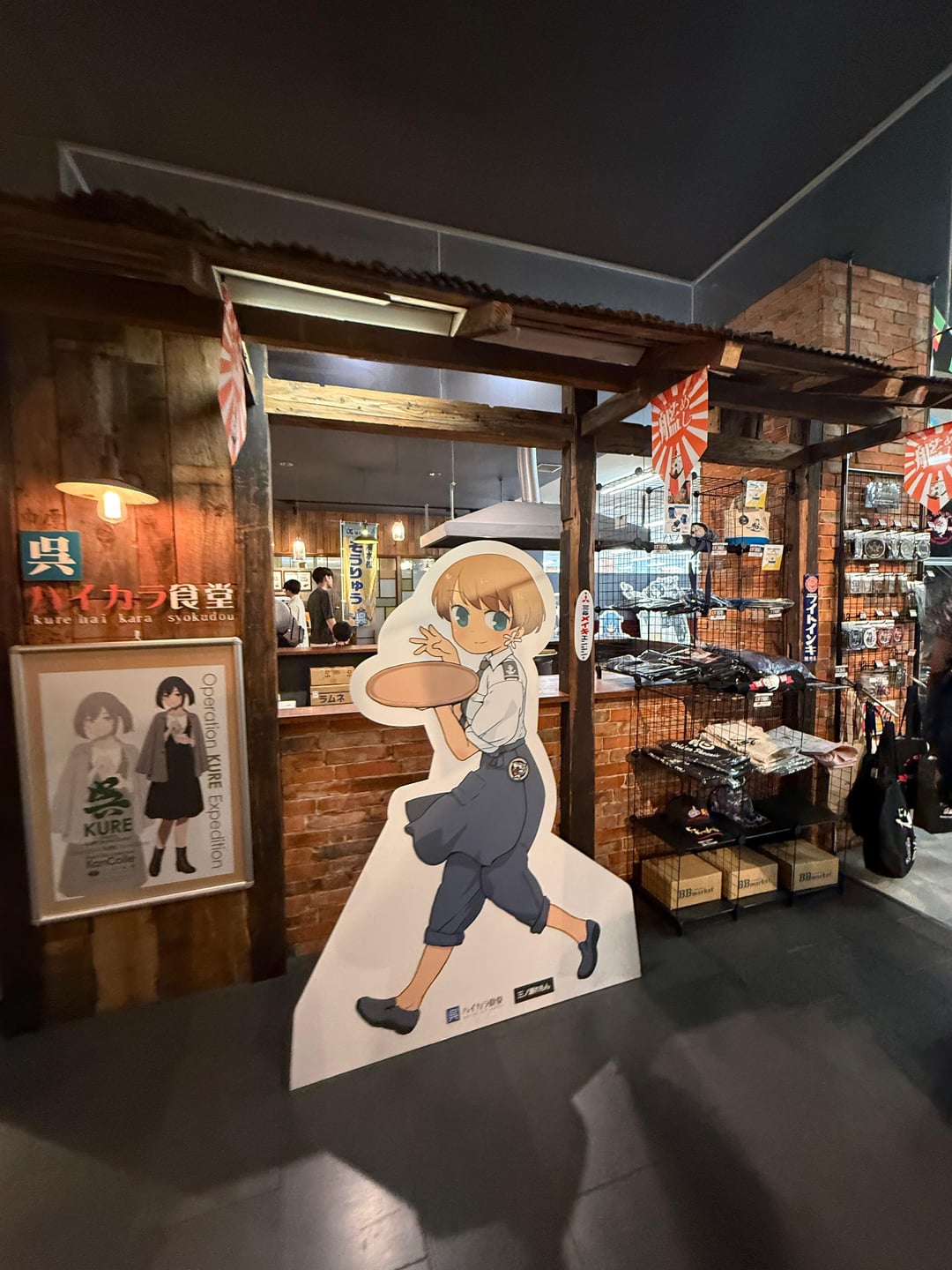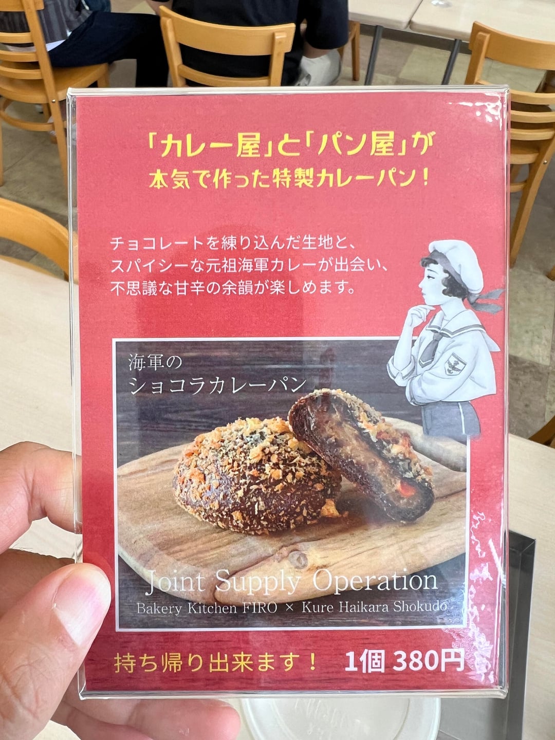 Photos 10-13: Kure JMSDF support facility canteen: JMSDF navy curry served by naval reserve personnel. That croquette on the plate on photo 11 was supposed to be whale meat but I got it substituted for beef. The chocolate curry bun on 12/13? Both it and the navy curry sounds and looks better than it was…really a bit “mid”.