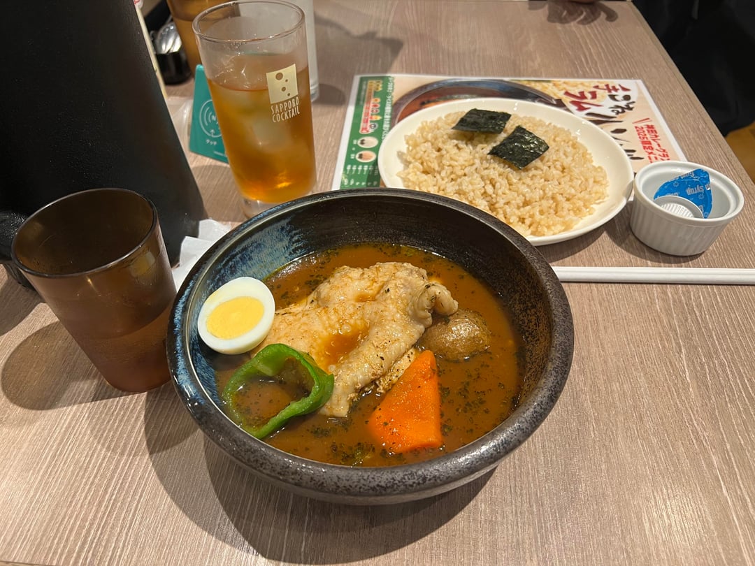 Photo 2 / 3: Curry shokudo Cocoro in Akihabara, Hokkaido style soup curry (they are a participant in the 2025 Kanda curry rally) – very decent/excellent.
