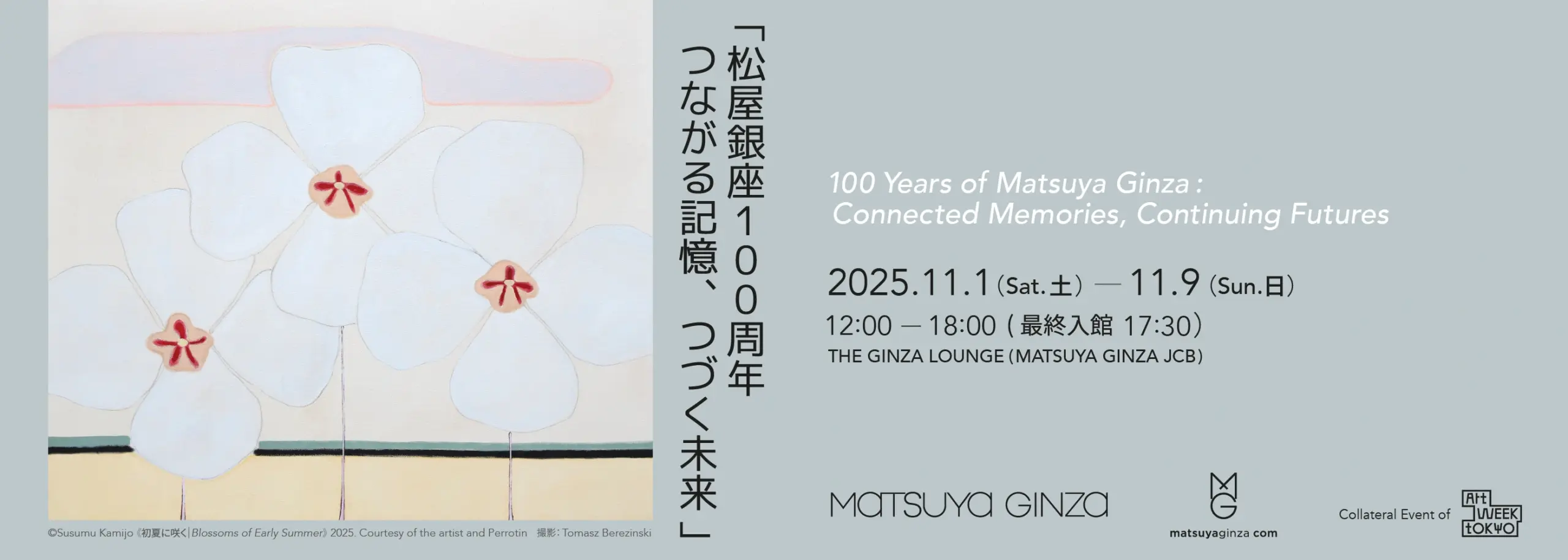 To honor a century of artistic engagement, Matsuya Ginza is pleased to present Connected Memories, Continuing Futures, a curated group exhibition featuring 12 leading and emerging Japanese contemporary artists.