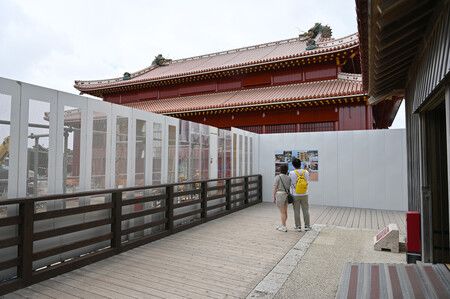 The wooden castle is considered the symbol of Okinawa. The main hall will be completed in autumn next year.
