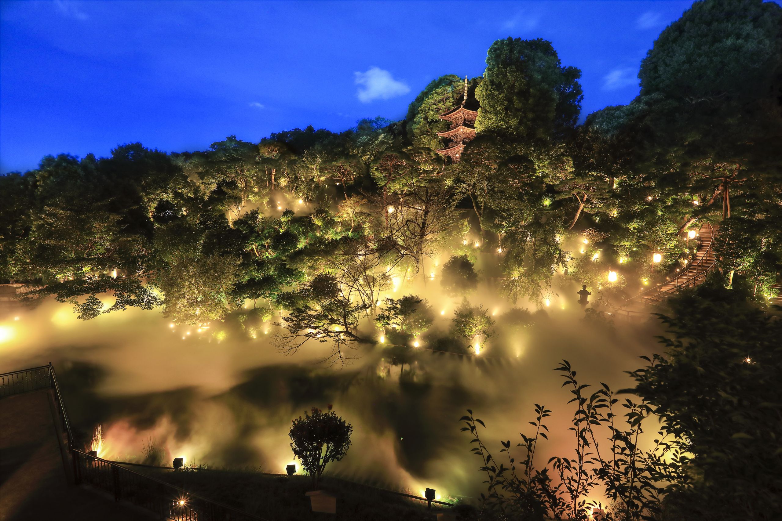Amid pure white lights that sparkle softly like snow, a champagne gold glow adds a gorgeous, radiant touch. Take a stroll through Mohri Garden and capture the beautiful illuminations reflecting beautifully in the dark pond.