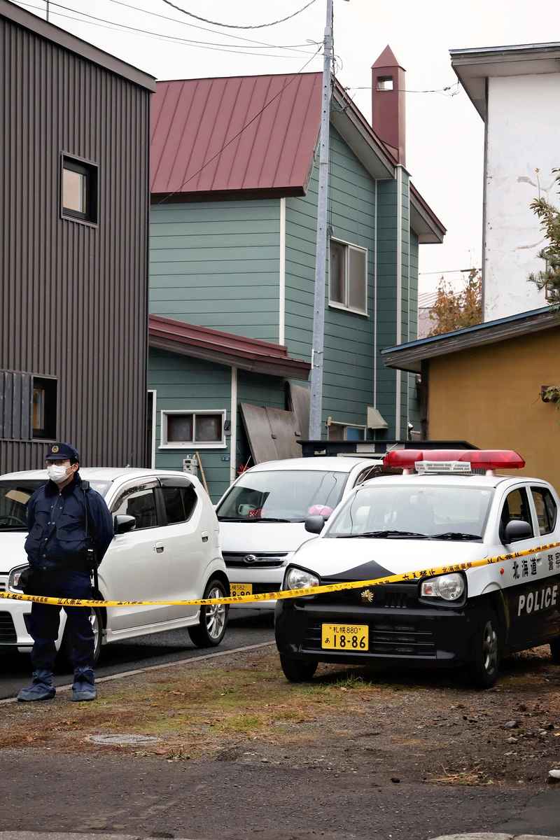 A house where three apparent stabbing victims were found is seen in Sapporo on Friday.
