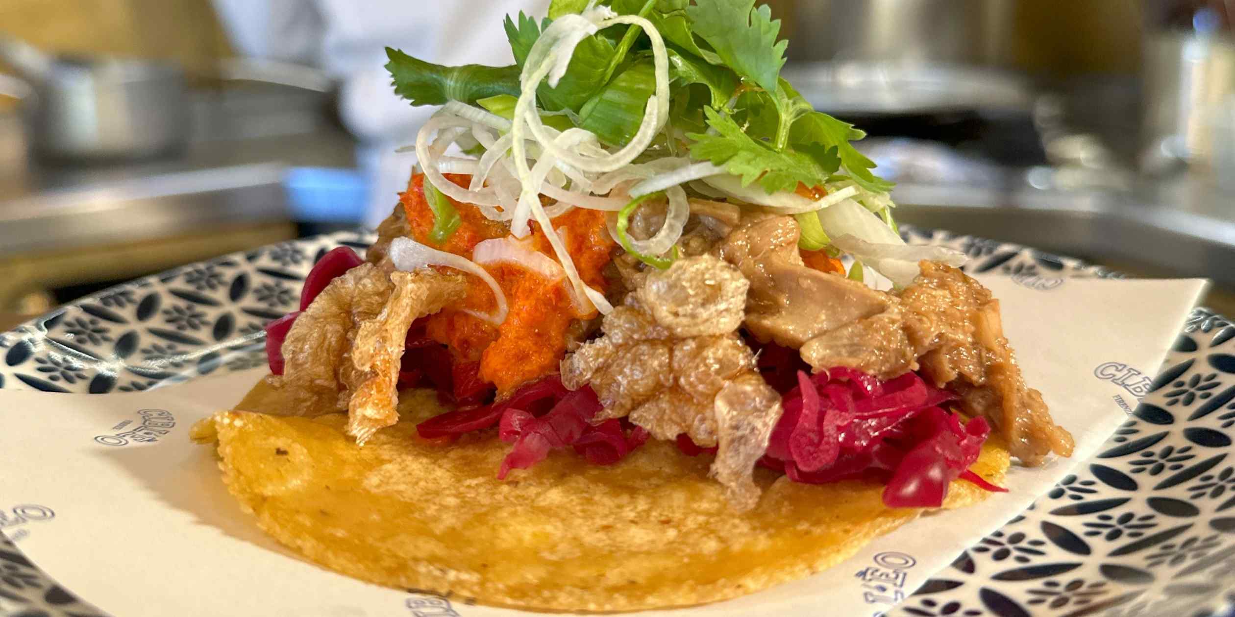 Cibleo, a 16-seat “kaiseki”-style (Japanese multicourse) restaurant in Florence, Italy, serves tacos that blend Japanese finesse with Italian flair. (Courtesy of Cibleo)