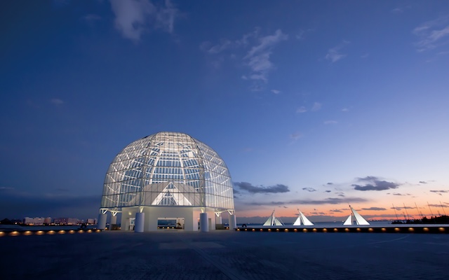 Its striking glass architecture provides a sleek, futuristic setting for memorable social events, transforming into a dazzling spectacle when illuminated after dark, with its shimmering façade reflecting its spirit of innovation.