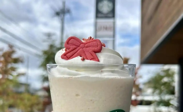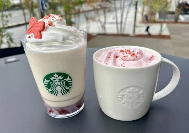 Joyful Medley is Starbucks’ special winter tea, a mixture of black, oolong, and jasmine teas flavored with apricot and, in this year’s version, mirabelle plum. Though we’re still in late autumn, the Christmas mood starts getting stirred up early in Japan, and so this is technically the kickoff for Starbucks Japan’s holiday season Frappuccinos, with the new drink’s red-and-white color scheme evoking thoughts of Christmas decorations.