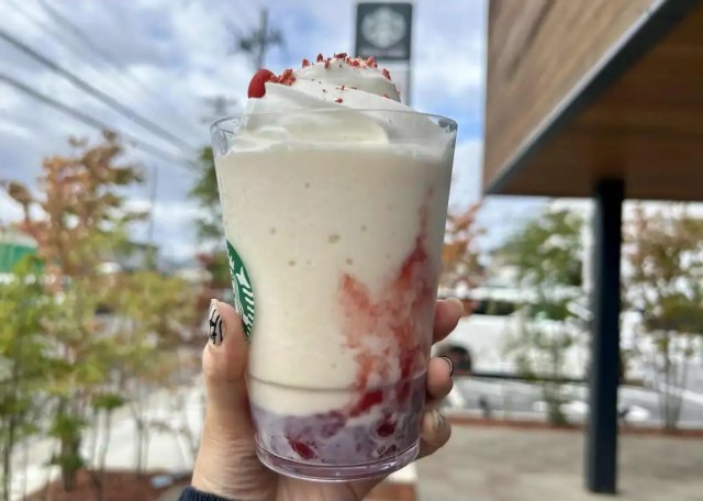 With last Friday being October 31, the time came to say goodbye to Starbucks Japan’s Halloween black cat Frappuccino. But the coffeehouse chain wasted no time bringing out a new seasonal dessert drink, as the Strawberry and Joyful Medley Tea Frappuccino went on sale the very next day, November 1.