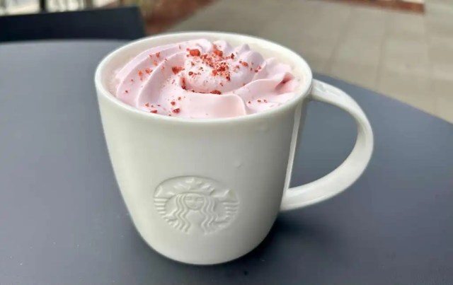 The extra-special ingredient here is the strawberry mousse topping, which is enhanced with a sprinkling of freeze-dried strawberries. The balance is tipped a little more towards sweetness here, but that’s not a complaint, as the gentle tart sensation comes across as an especially cozy and comforting accent, especially when it’s part of a warm, creamy package.