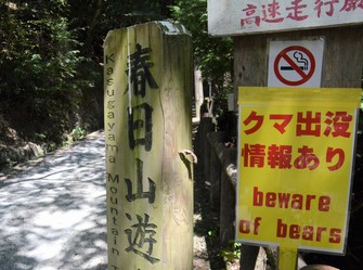 A sign at the entrance to the Kasugayama Mountain Trail cautions people following a bear sighting in the area, at Nara Park in the western Japan city of Nara on Sept. 1, 2025. (Mainichi/Kazugi Yamaguchi)