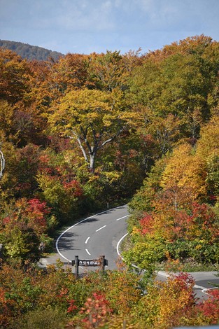 Autumn foliage along the Hachimantai Aspite Line, a sightseeing road, is seen around the prime viewing season in Kazuno, Akita Prefecture, on Oct. 15, 2025. (Mainichi/Naoki Watanabe)