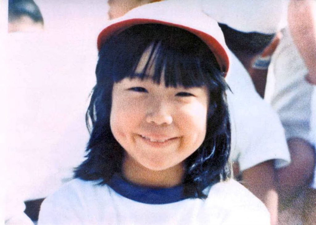 Megumi Yokota, smiling with dimples, during her elementary school’s 4th-grade sports day.