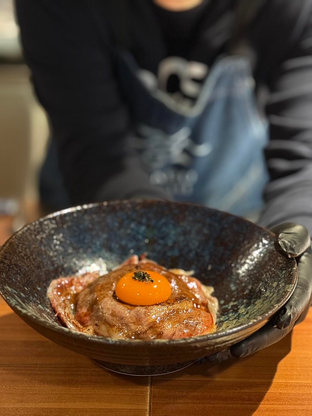 While I was eating, I noticed a dish at another table that smelled amazing — beef being torched at the table. I asked what it was and ordered it too. It’s called Kaketama Udon — soft udon noodles served with seared beef in a savory sauce, topped with a fresh raw Japanese egg. Once mixed together, the dish was rich, umami-packed, and super satisfying.
