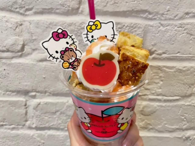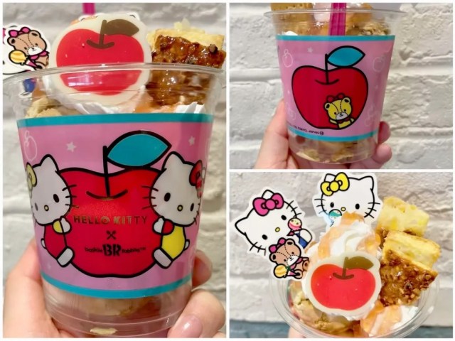 This is just the tip of the iceberg for the collaboration, though. According to her official profile, one of Hello Kitty’s favorite foods is apple pie, which brings us to the Hello Kitty Apple Pie Sundae.