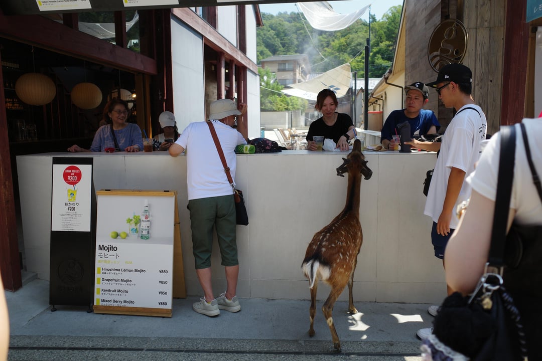 Deers in Miyajima ordering drinks