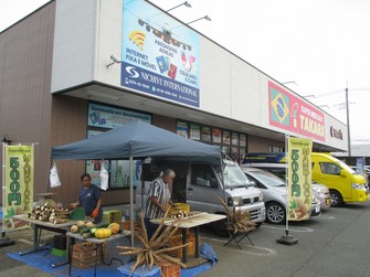 A supermarket frequented by Brazilians and other foreign nationals is seen in Oizumi, Gunma Prefecture, Oct. 12, 2025. In a corner of the parking lot, cassava, a root vegetable used in Brazilian cuisine, was being sold. (Mainichi/Masanori Hattori)