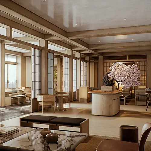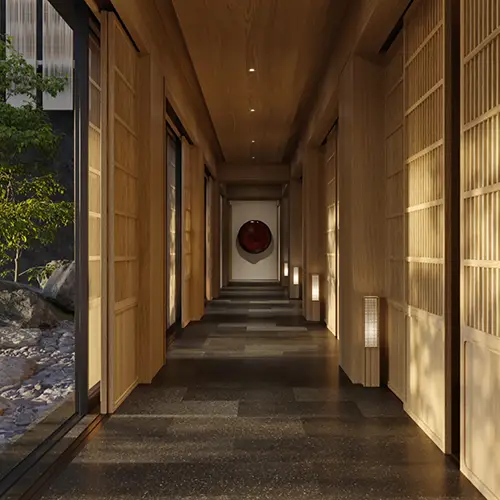 Singapore-based Brewin Design Office approached Capella Kyoto as an exercise in spatial storytelling, where architecture becomes a sequence of carefully choreographed experiences. The design celebrates the traditional machiya—Kyoto’s historic wooden townhouses characterised by narrow street-facing facades, deep interiors, and inner courtyards that create intimate, layered spaces between public and private realms.