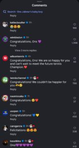 Several notable names from the tennis world and Jabuer’s peers shared their heartfelt wishes to the couple. Osaka wrote:
