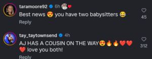 “AJ HAS A COUSIN ON THE WAY 😍🔥🔥❤️❤️❤️,”