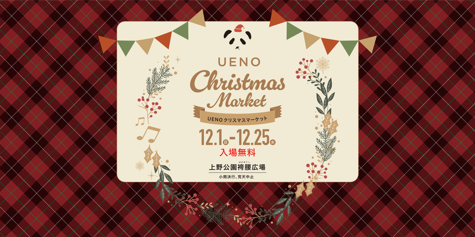 The Ueno Christmas Market is bringing illuminations, food, live music and pandas for the holiday season at Hakamakoshi Square.
