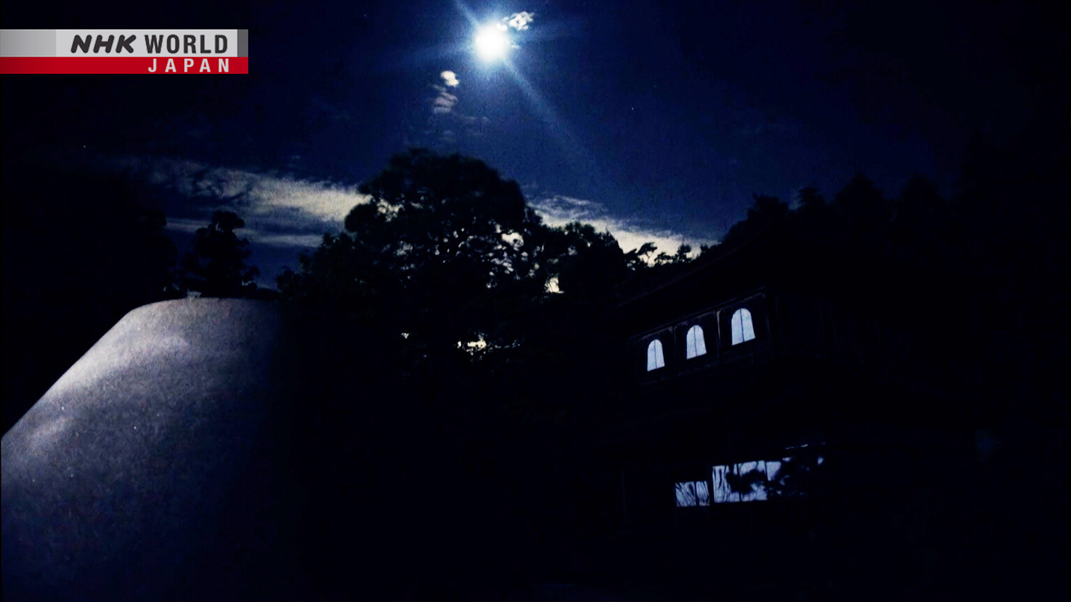 The gardens of Ginkaku-ji illuminated by the moon.