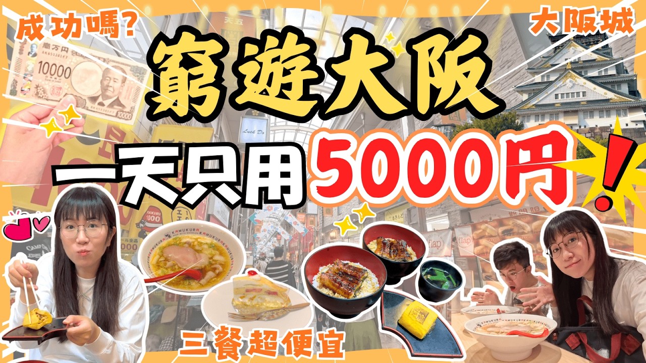 【窮遊大阪5000円一日挑戰!】吃足3餐平價美食🍜|省錢行程🏯|暢遊展館🪅| 大阪城坐觀光車🚌|大阪自由行|日本自由行2025