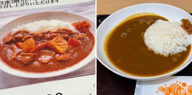 Surprisingly, once the dish arrives, the actual version seems to have a more modest appearance than its picture: a simple serving of curry beside a mound of rice, garnished with only a small spoonful of fukujinzuke pickles.