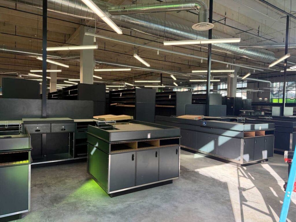 A walk through of the interior shared by Bay Street revealed slate-colored shelves and registers, white subway tiles and industrial lighting and accents.