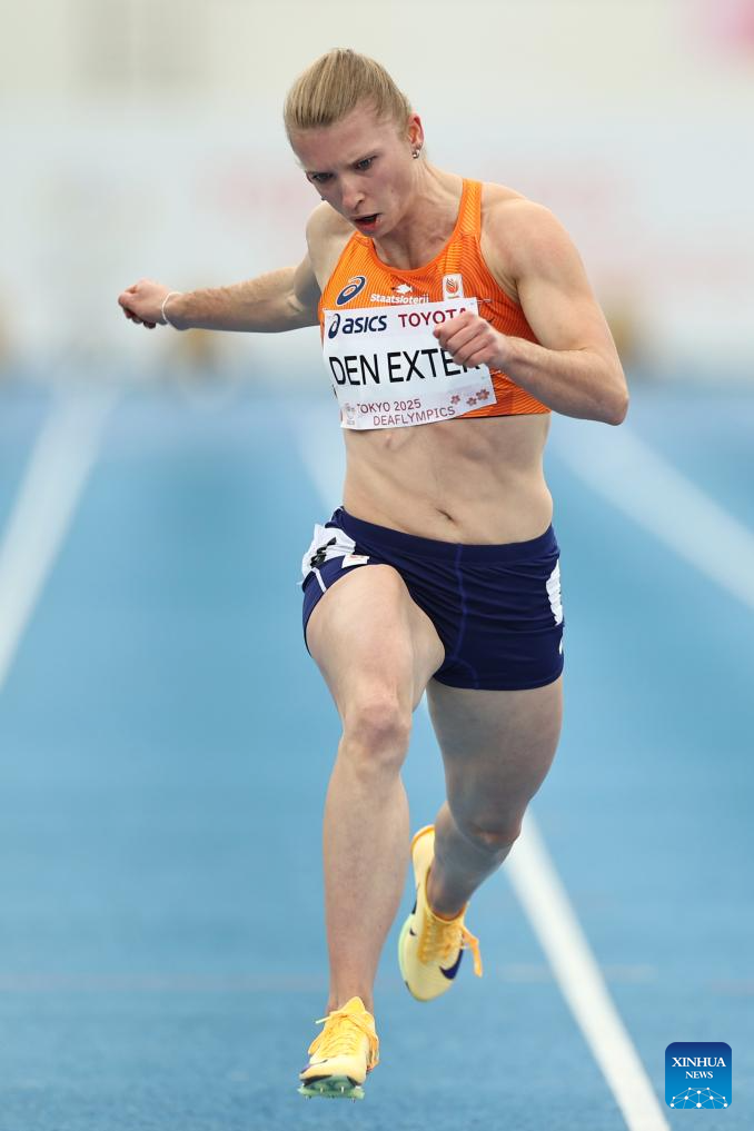Elaine Janice Den Exter of the Netherlands competes during the women’s 100m final of athletics at the 25th Summer Deaflympics Tokyo 2025 in Tokyo, Japan, Nov. 18, 2025. (Xinhua/Jia Haocheng)