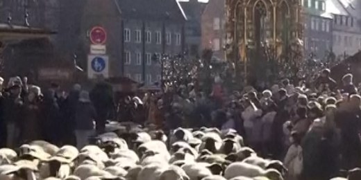 Hundreds of sheep cross historic German city00:30