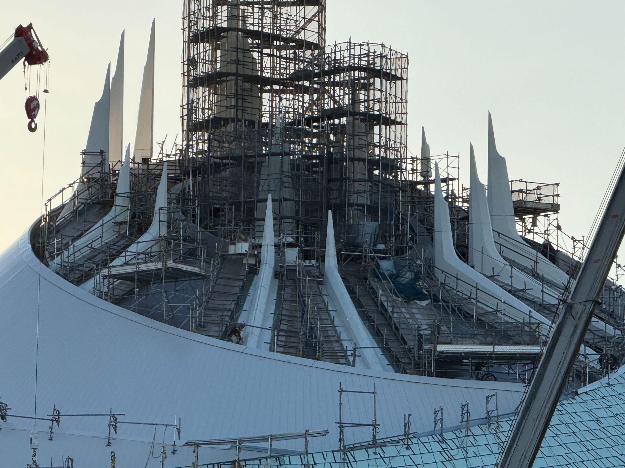The new Space Mountain under construction at Tokyo Disneyland now has decorative spires. The attraction has been under construction for over two years although the old Space Mountain did not close until the summer of 2024.