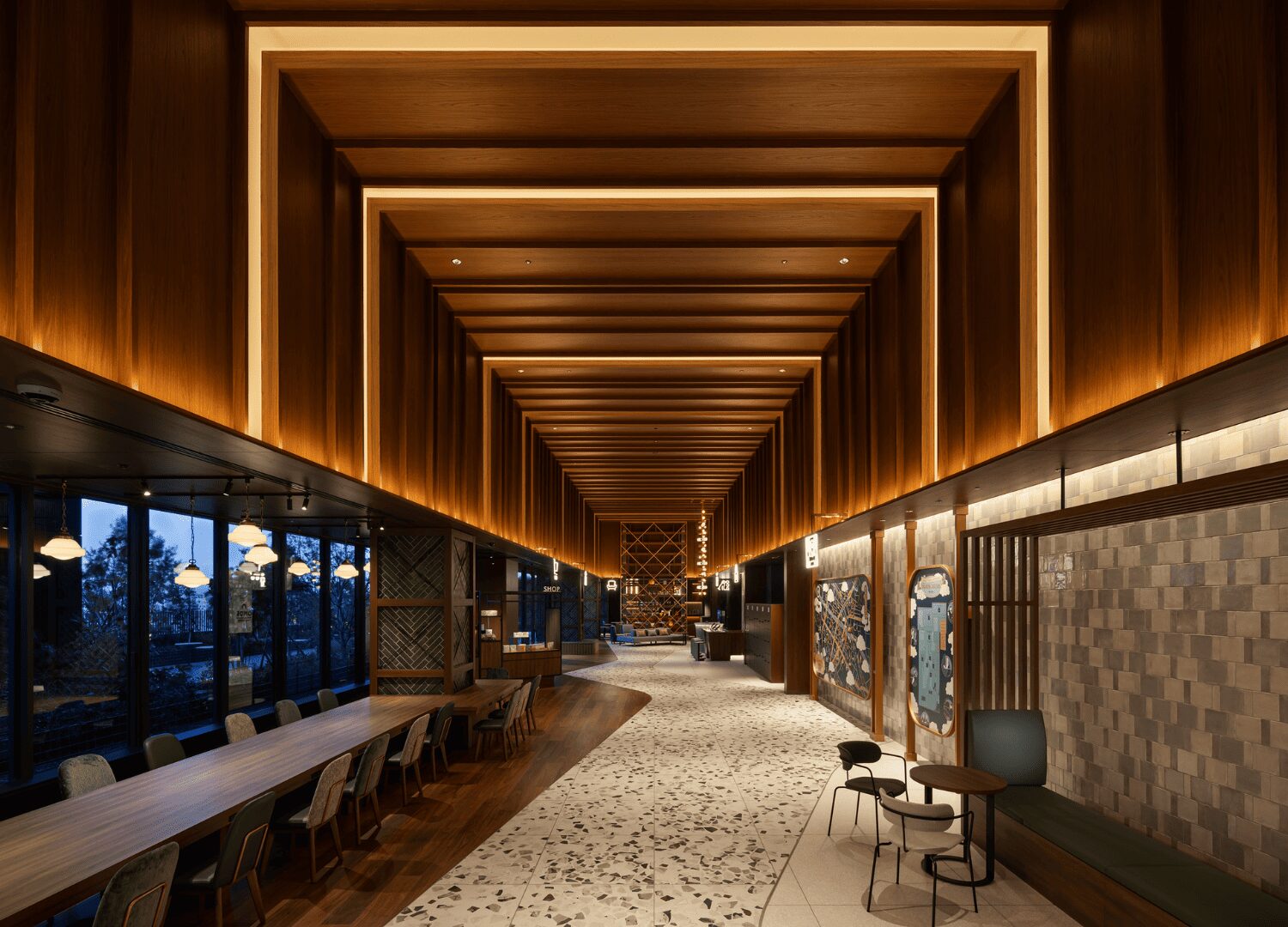 Inaugurated on 11 April 2024, OMO5 is housed within the Gotanda JP Building, a complex of offices and shops. The hotel occupies the upper floors of the building, starting at the 14th floor (OMO Base), 60 meters above ground. The floor spans 1,200 square meters with a six‑meter‑high wooden ceiling where guests will find the reception, lounge, OMO Café & Bar, and a garden terrace with stunning views of the city.