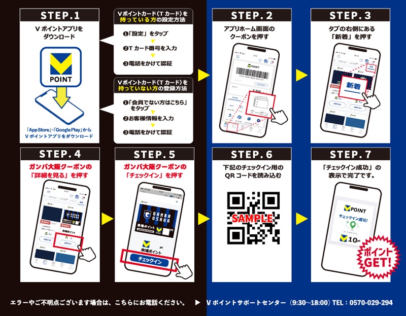 If you check in using the posters displayed at the stadium, you will receive 10 V Points. Please make use of the V Points app and enjoy earning points at home games.