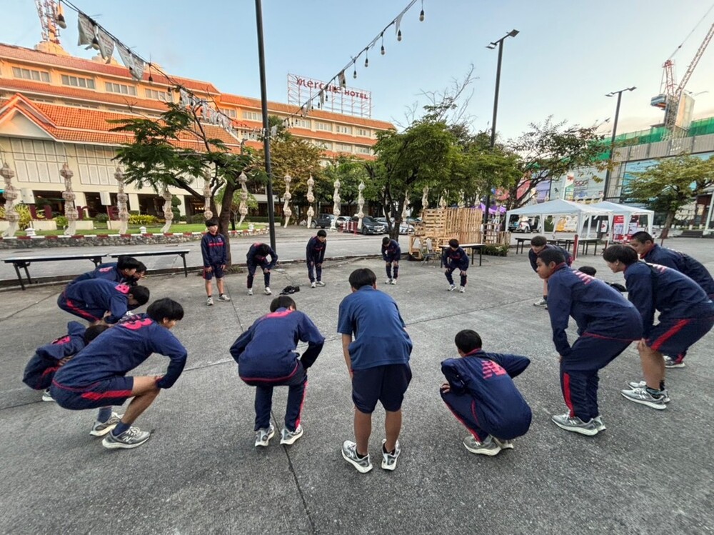 Then came the customary FC Tokyo U-15 Musashi quick performance time. It began with player Keita Kazeka’s “Don’t mind, brown rice, here in Chiang Mai,” filling the morning with laughter.