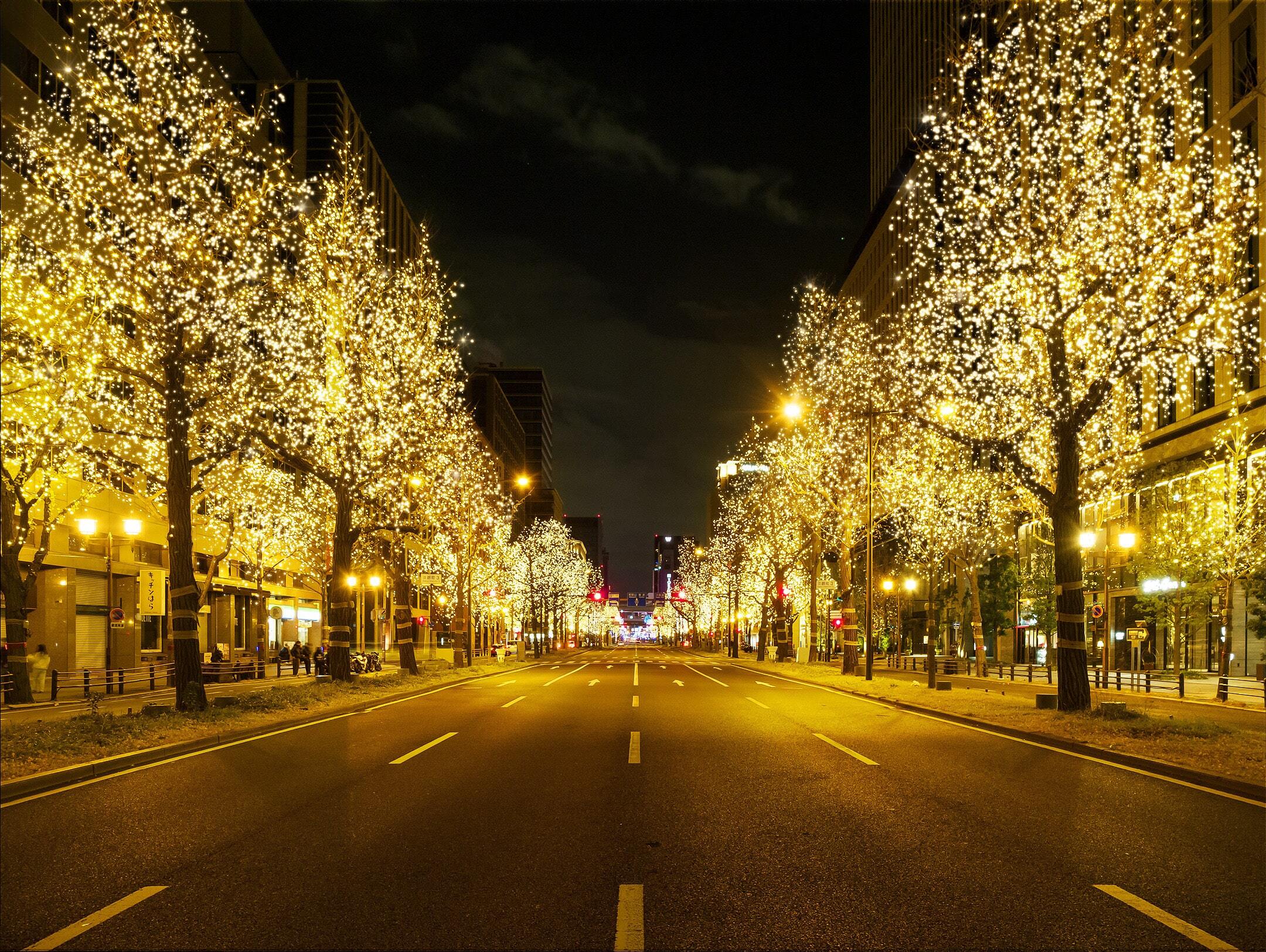Osaka’s main and most famous road, the tree-lined Midosuji stretches from Umeda to Namba. The 4km-long Light Path comes aglow from 5pm until 1am, with the illuminations continuing until December 31.