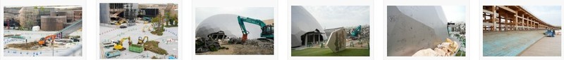 Inside the Great Ring, the venue’s iconic large roof, the demolition work of international pavilions was in full swing. Scaffolding surrounded the France Pavilion and the USA Pavilion, with sandbags and construction materials piled up in various areas of the plaza.