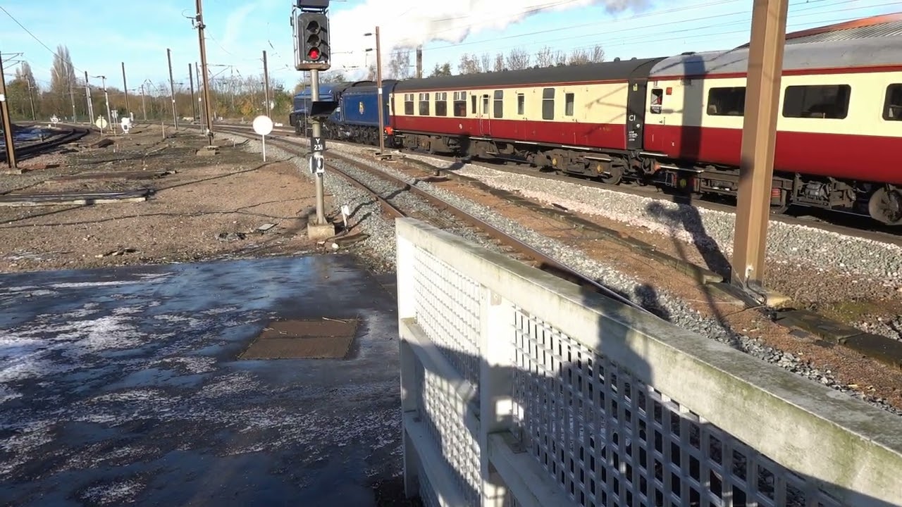 My day started with Kings Cross in beautiful morning sunlight. I joined the tour at Peterborough, as did SNG. The main shot is a hand held view of the ECS movement, a beautiful sight in the winter sun and the sound track shows 60007 is in complete command of the job.