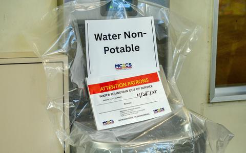 All water at Marine gyms on Okinawa is considered non-potable during an islandwide water outage, according to a sign at Gunners Fitness Center on Camp Foster, Nov. 24, 2025. (Ryan M. Breeden/Stars and Stripes)