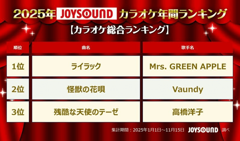 JOYSOUND & DAM have released the list for the Top Karaoke Songs of 2025