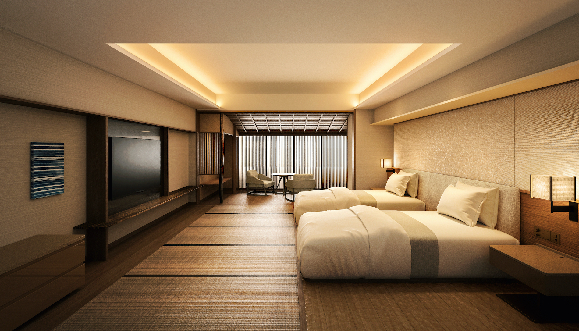 The Main Building – Heritage: For the purist. These spaces preserve the original pillars and window frames of the Yasaka Kaikan, offering a tactile connection to the architectural past.The Main Building: A celebration of light. Floor-to-ceiling windows turn the bustling Gion cityscape into personal artwork.The North Wing: A historic first. Here, the Imperial Hotel introduces tatami flooring for the first time in its history, creating a minimalist, hushed retreat that mirrors the traditional streetscape outside.
