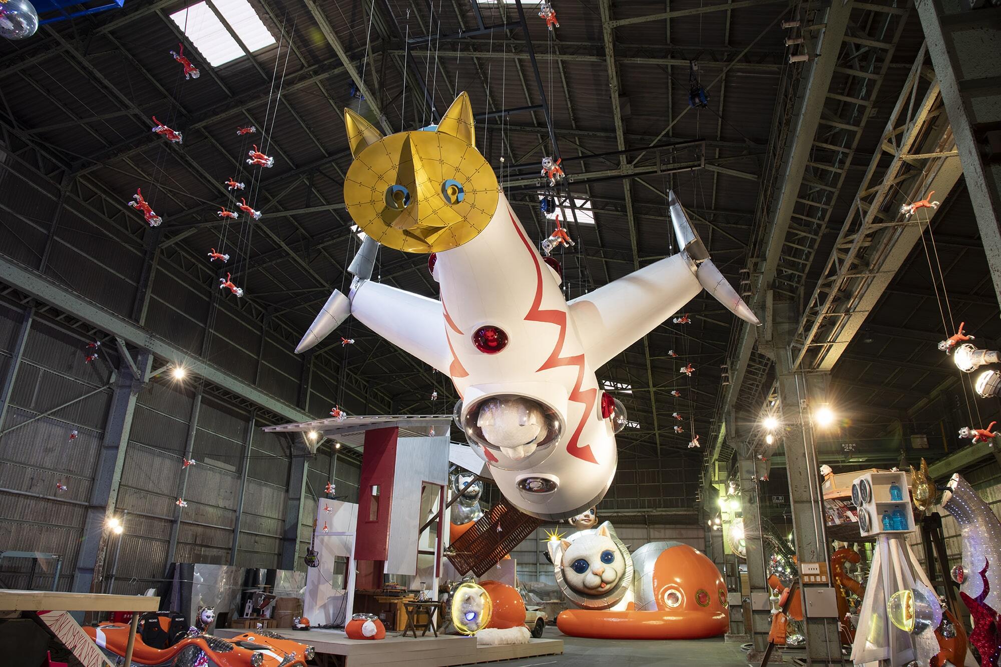 Held at MASK (Mega Art Storage Kitakagaya), a repurposed art warehouse formerly used for steel processing, this exhibition revolves around Luca, the solar tower-shaped spaceship first seen in the now-concluded Big Cat Bang exhibition at Ginza Six. It’s displayed alongside other sculptures from the Ship’s Cat series, as well as works by other artists from MASK’s collection.