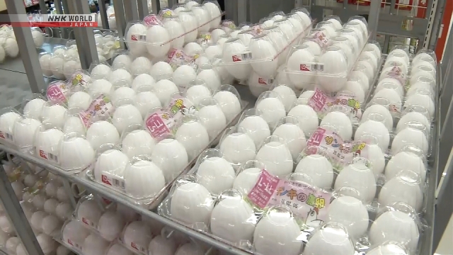 An industry group says the average benchmark wholesale price for medium-sized eggs in Tokyo was 340 yen, or about 2 dollars, per kilogram for the month.