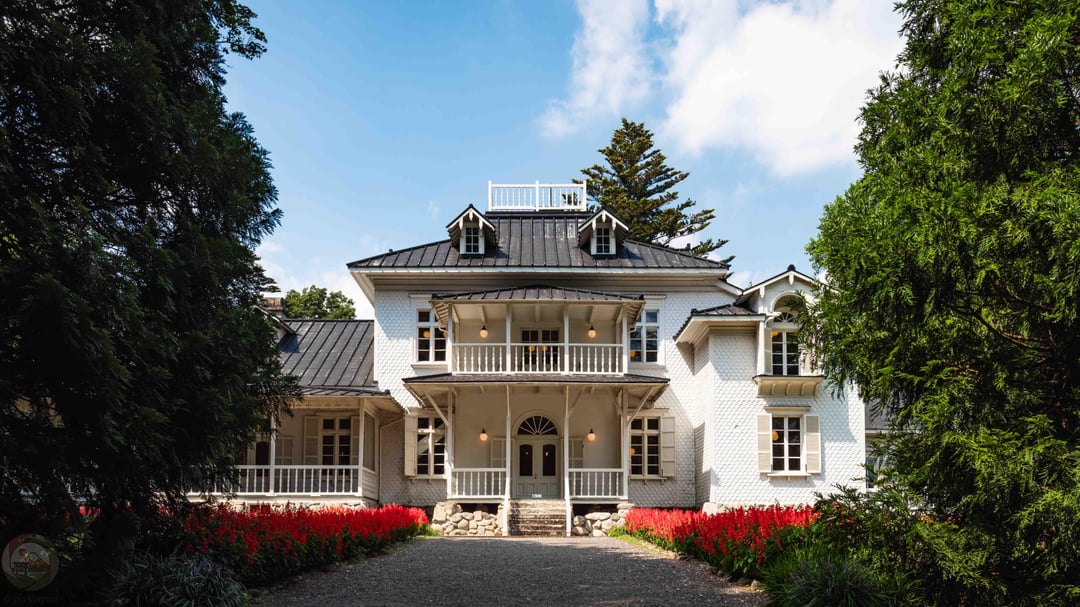 Built in 1888 in Tochigi, Japan, Aoki Villa was commissioned by Viscount Shūzō Aoki (青木周蔵; 1844–1914), one of Japan’s first overseas ambassadors. Now a designated historic landmark, the estate features beautifully landscaped gardens and a long cedar-lined allée accented with vivid scarlet sage, leading to the former Meiji-era aristocrat’s resort villa.