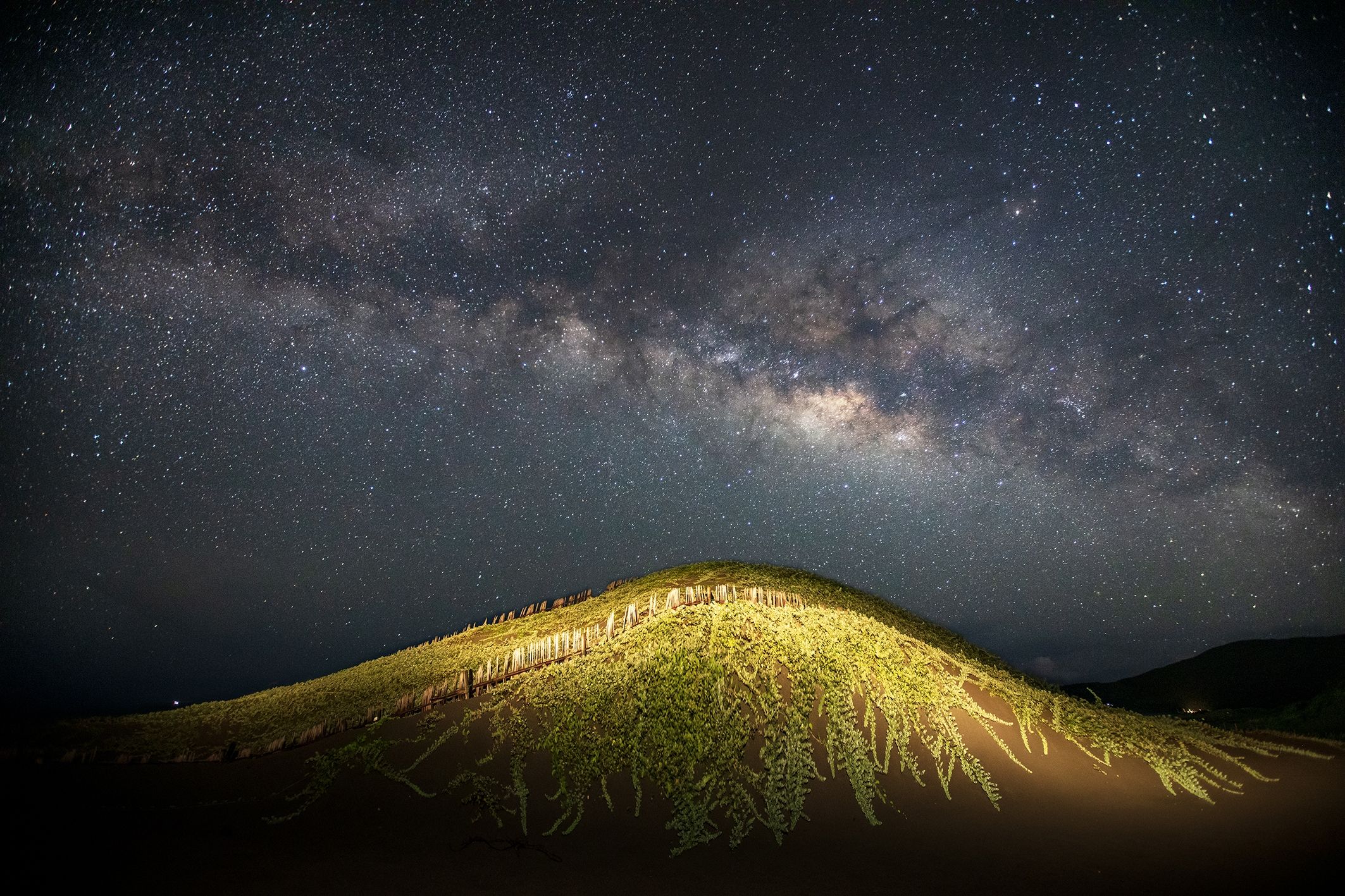 “I found a hill that looked a lot like Mount Fuji on the seashore with desert terrain,” recalls Shang. “Suddenly, Japanese music started to play in the nearby villages and the Milky Way just happened to rise. I had the illusion of being in a foreign country.”