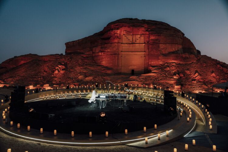 Hegra, an ancient necropolis built approximately 2,000 years ago and Saudi Arabia’s first UNESCO World Heritage Site, has hosted only world-class artists, including Andrea Bocelli and Ludovico Einaudi. Under the glow of thousands of candles, Yoshiki’s piano resonated through the historic silence, creating a magical atmosphere that captivated all in attendance.