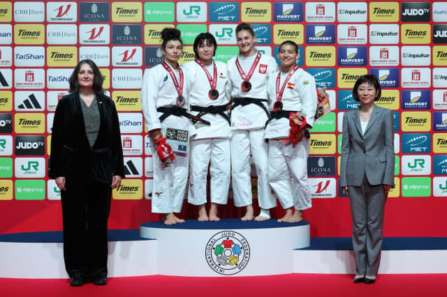 Medals, cheques and flowers were presented by Dr Lisa Allan, IJF Secretary General, and Ms Junko Nushi, AJJF Executive Board member.