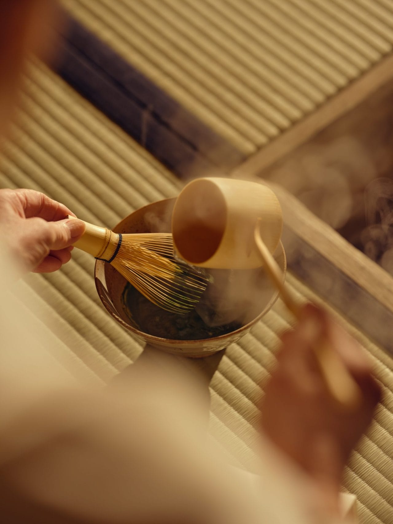 Set at the end of a moss-covered stone path and overlooking a quiet pond, the tea house fits naturally into Aman Kyoto’s gardens. Inside, the host practises omotenashi, the art of thoughtful hospitality, guiding guests through the ceremony with deliberate movements that bring a sense of harmony and calm.