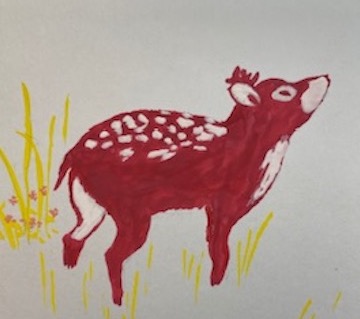 Here, the deer becomes a bridge between realms—neither fully grounded in the physical world nor entirely released into the spiritual. Her palette glows with a muted sanctity: subtle tones that seem to vibrate with the presence of something greater, something gently divine. This is not a direct depiction of sacred forces, but a soft, reverent murmur of their proximity, as though the Kami have passed by moments before, leaving a quiet trail of light upon the canvas.