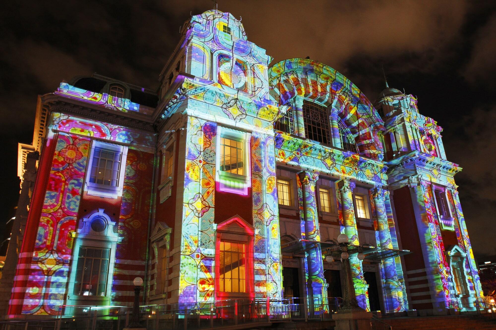 The Osaka Central Public Hall Projection Mapping (December 14–25, 5pm–9pm) turns the historic neo-Renaissance building into a night festival space, featuring vibrant stained-glass colours and shimmering effects.