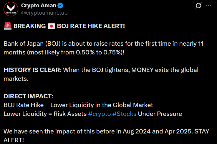 BOJ interest rates decision/ source: X courtesy of Crypto Aman