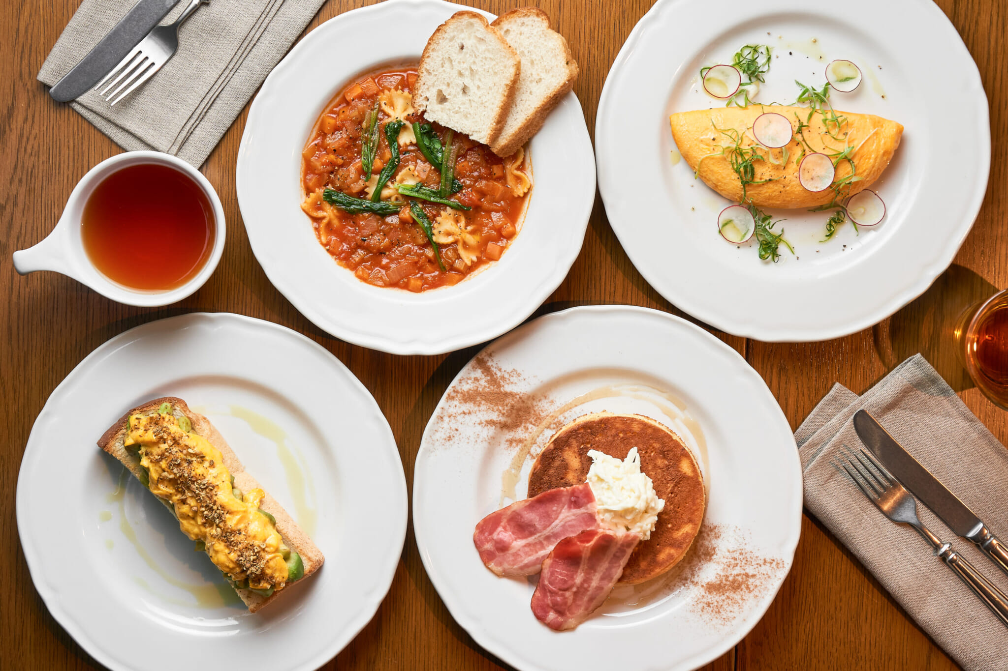 Start your day with a grand breakfast at Curd, where you can enjoy a main dish of your choice and a half buffet. The colorful spread features cuisine from Italy, Spain, the Middle East and the Mediterranean coast with freshly made ricotta omelettes, fromage blanc pancakes, Kyoto-style udon and more.