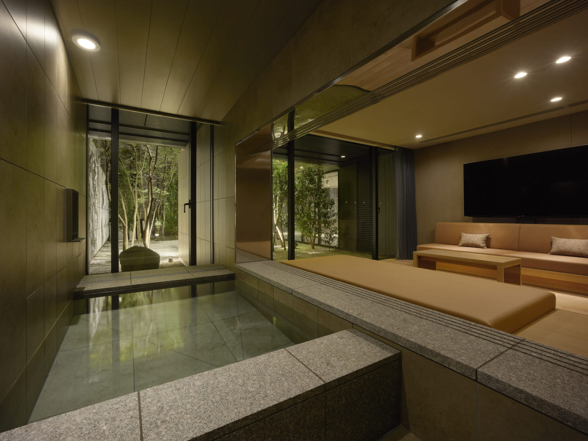 After dinner, unwind with a relaxing soak. In addition to a large public bath, the hotel also has a luxurious, reservation-only private bath — the first of its kind for the Mitsui Garden Hotel brand. Guests can enjoy the courtyard backdrop and lounge in a living area alongside the private bath with extensive two-hour reservation slots.